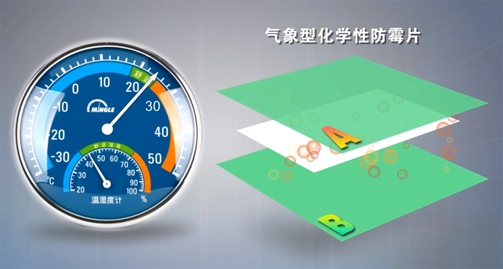 顺发2468 气象型防霉片是严格按照欧盟指令而开发出的又一款新型防霉产品。它是随湿度高低而控制气体的缓释浓度(干燥状态下不释放防霉气体),在海运过程中,由于昼夜温差大、湿度高等原因,很容易导致霉菌滋生。而新型气象型防霉片,可以在产品包装箱内的湿度大于45%的情况下与水烝气接着引发A与B物自动发生化学反应,生成一种保护性气体,在包装箱这个相对密封的环境下,这种保护性气体可以无孔不入与霉菌孢子充分接触,迅速穿透微生物的细胞膜,破坏其DNA,使细菌或霉菌无法繁职,以达到商品防霉防腐的效果。同时,保护性气体在密封空间内缓慢释放,既能延续其防霉效果,又不会对商品外观和质量造成不良影响。为了保护你的产品,热诚欢迎有识之士和企业前来订制专版!枭森愿与你共创辉煌!!