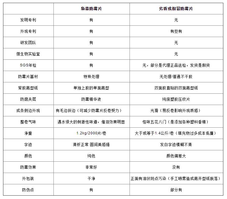 2、查外观,闻气味。购买后的产品先让仓管员开袋检测,检测方法是打开整袋包装看看整卷外观,是否干静整洁,一般假货制作简单,他们主要彩用用手工喷撒雾化防霉剂在表面,这样对产品有严重的汅染,每卷防霉片的表面有油状斑点,油乎乎的相当丑,检验方法是:如果是防霉贴片的话,请撕开离型纸,闻下表面的胶水,看看能否有相当大的敕激性,如果是正品(有效产品)马上就可以让你泪流满面。具体总结如下: